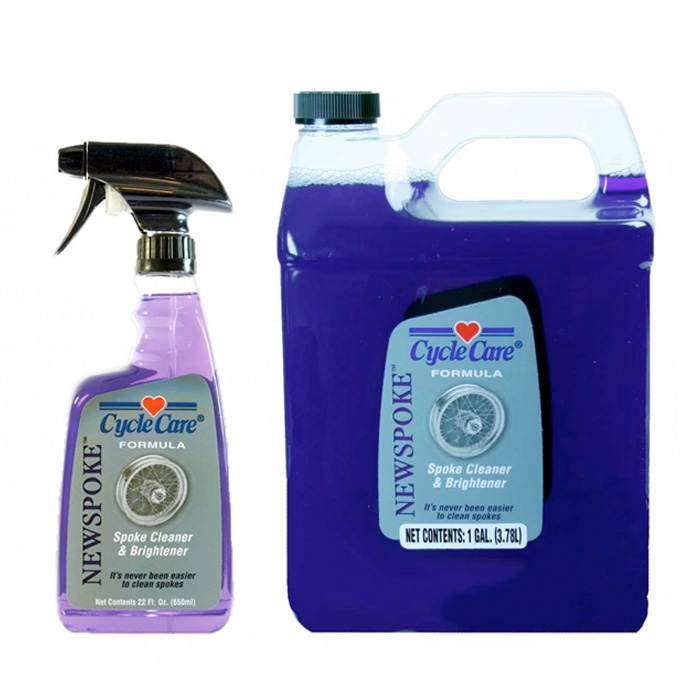 Cycle Care Formula NEWSPOKE cleans brake dust from areas that are immoveable and unreachable with wheel cleaners, string laces, towels or brushes. NEWSPOKE removes brake dust, dirt & road film leaving aluminum, stainless steel & chrome spokes clean & bright. NEWSPOKE is safe on brake rotors, calipers, pads, tires and all metal.